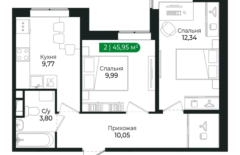 Напрямую продаётся уютная 2-комнатная квартира №104 общей площадью 45,95 м2 во II очереди в жилом комплексе Сертолово Парк от застройщика ГК Алгоритм.✅ Все квартиры сдаются с чистовой отделкой в природных тонах. Пусть ваш дом будет теплым и уютным.