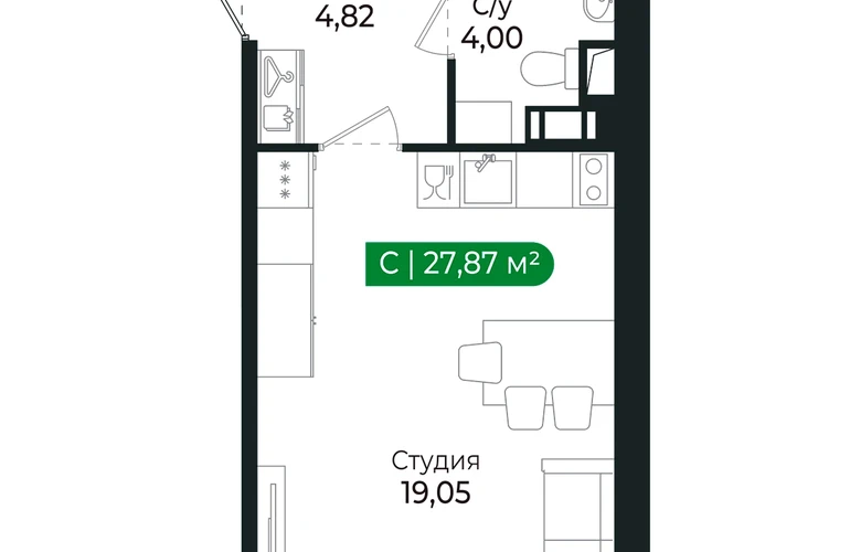 Напрямую продаётся квартира -студия № 19 на 2 этаже (из 8) общей площадью 27,87 м2 в III очереди в жилом комплексе Сертолово Парк от застройщика ГК Алгоритм.