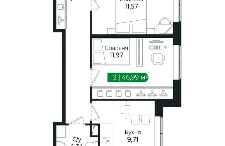 Для тех, кто ценит комфорт и функциональность. Наличие двух отдельных комнат позволяет обустроить спальню, гостиную или детскую. Кухня средней площади. Система хранения во входной зоне. Грязная зона удалена от основной части квартиры. Напрямую продаётся 2 комнатная квартира № 55 на 2 этаже (из 4) общей площадью 46,99 м2 в III очереди в жилом комплексе Сертолово Парк от застройщика ГК Алгоритм. ✅ Все квартиры в ЖК Сертолово Парк сдаются с чистовой отделкой в скандинавском стиле. Въезжайте и живите без дополнительных затрат на ремонт. ✅ Увеличенные оконные проемы и потолки высотой 2,74 м придают квартирам в ЖК Сертолово Парк ощущение простора, обеспечивая максимальное естественное освещение и свежий воздух. ✅ Энергосберегающий дом строится по финским технологиям: наружные стены изготовлены из заводских трехслойных железобетонных панелей толщиной 390 мм, фасады утеплены - толщина утеплителя 150 мм - и закрыты декоративным слоем -толщина 90 мм. ✅ Расположение ЖК: идеальное место для комфортной жизни в городе Сертолово. В 200 метрах находится детская и взрослая поликлиники. Вблизи детские сады и школы. ✅ ЖК Сертолово Парк окружен прекрасным лесным массивом, что создает уникальную атмосферу спокойствия и природной красоты прямо за порогом вашего дома. ✅ Для детей и взрослых на территории ЖК имеются детские и спортивные площадки. Кроме того, чтобы обеспечить безопасность и уединенность, территория жилого комплекса полностью закрыта. ✅ Крытый многоуровневый наземный паркинг с грузовым лифтом. Звоните! Ответим на все вопросы.О застройщике