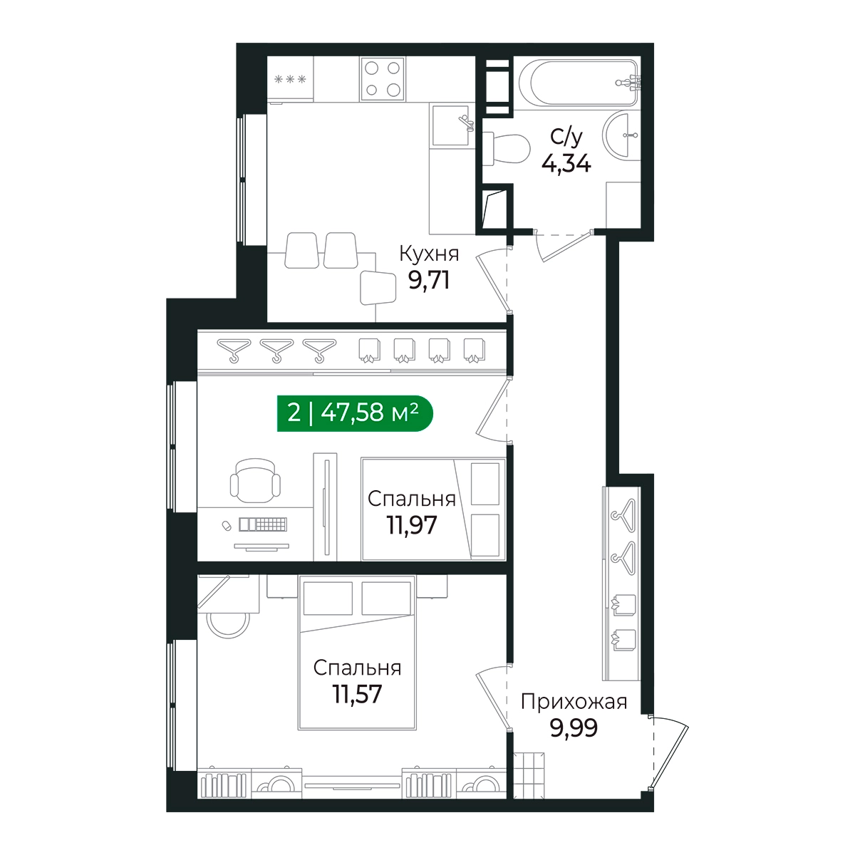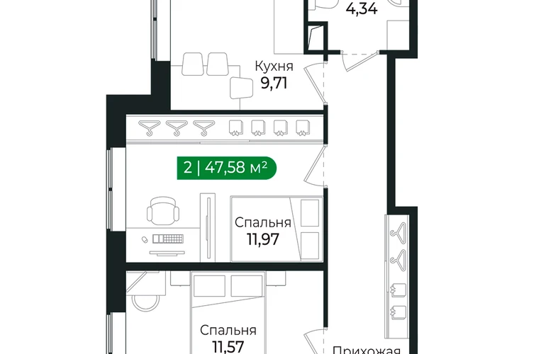 Для тех, кто ценит комфорт и функциональность.Наличие двух отдельных комнат позволяет обустроить спальню, гостиную или детскую комнату.