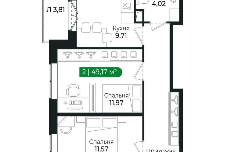 Для тех, кто ценит комфорт и функциональность.Наличие двух отдельных комнат позволяет обустроить спальню, гостиную или детскую комнату.