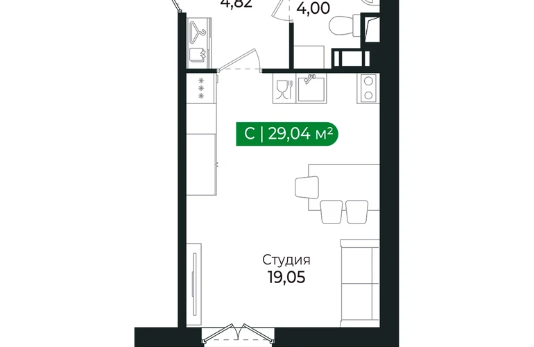 Напрямую продаётся квартира -студия № 216 на 2 этаже (из 8) общей площадью 29,04 м2 в III очереди в жилом комплексе Сертолово Парк от застройщика ГК Алгоритм.