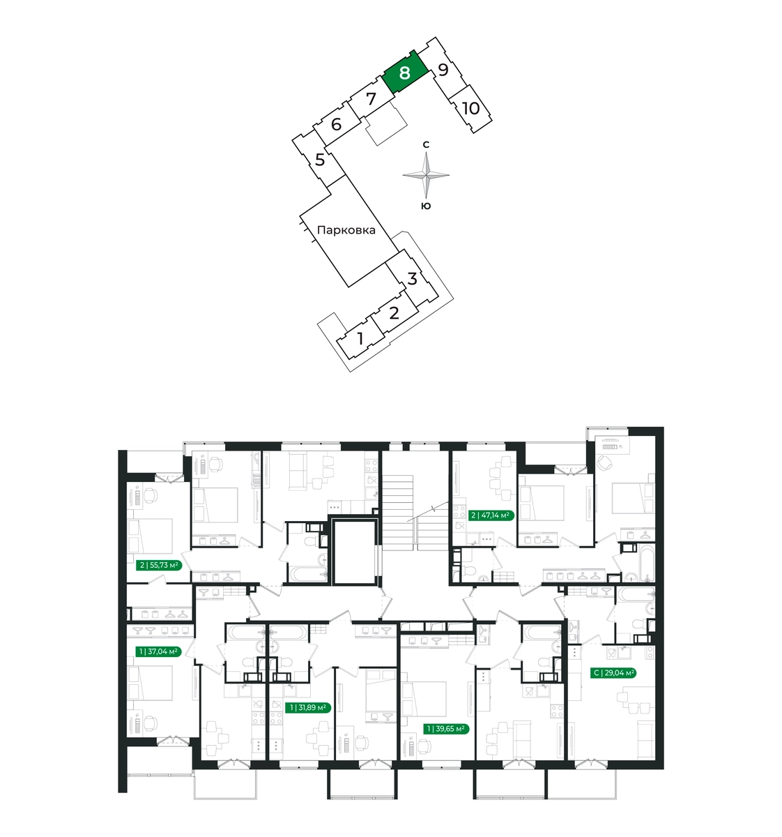 ✅ Крытый многоуровневый наземный паркинг с грузовым лифтом.