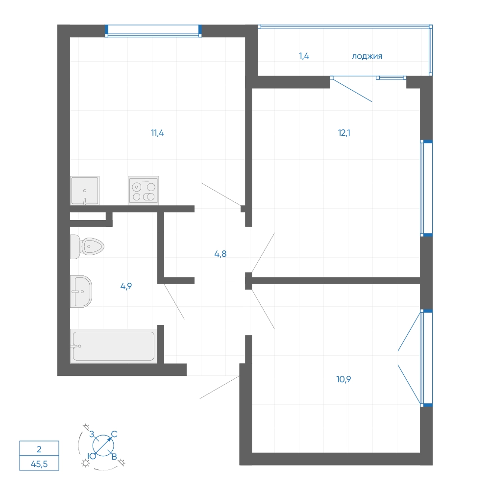 • Комнатность2 ком