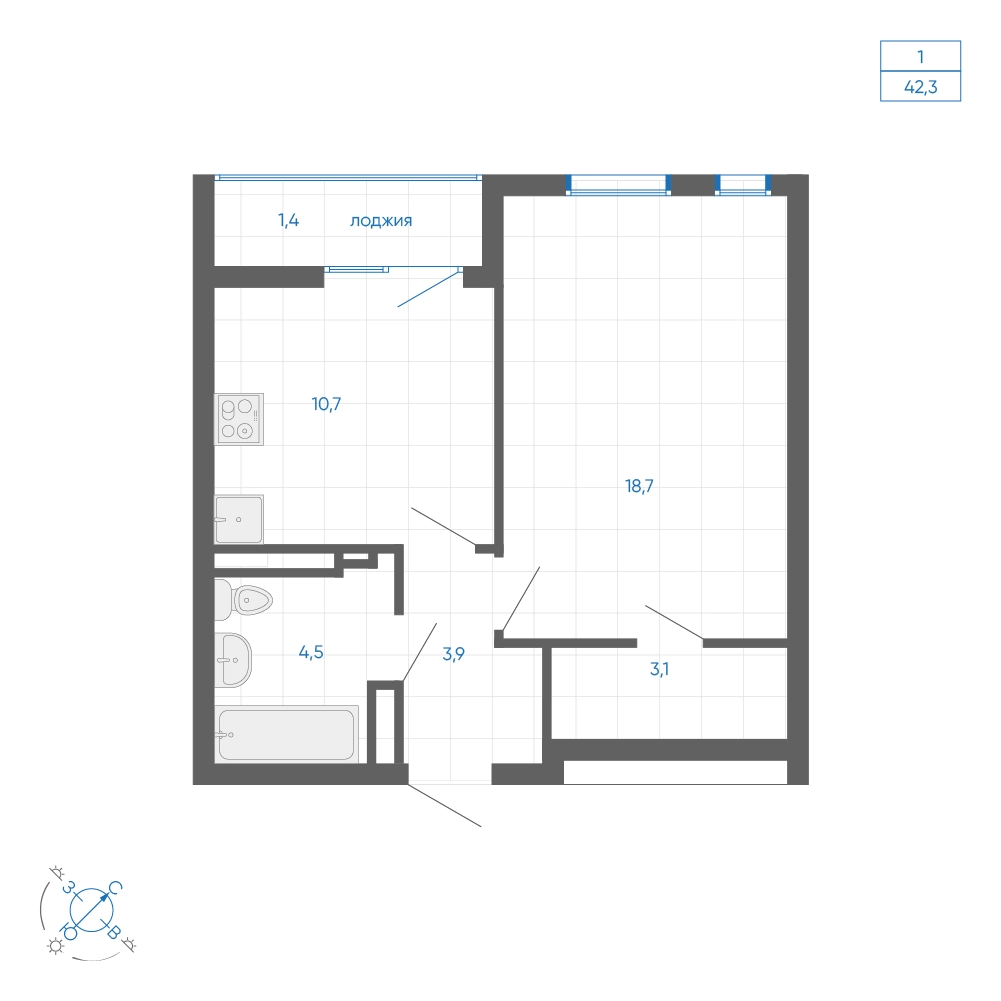 1-ком, 42.30 кв.м., 26/32эт.