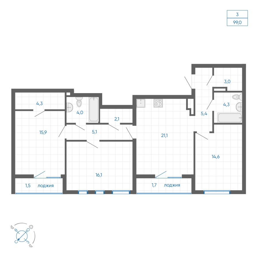 • Общая площадь99.00