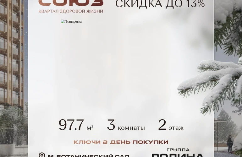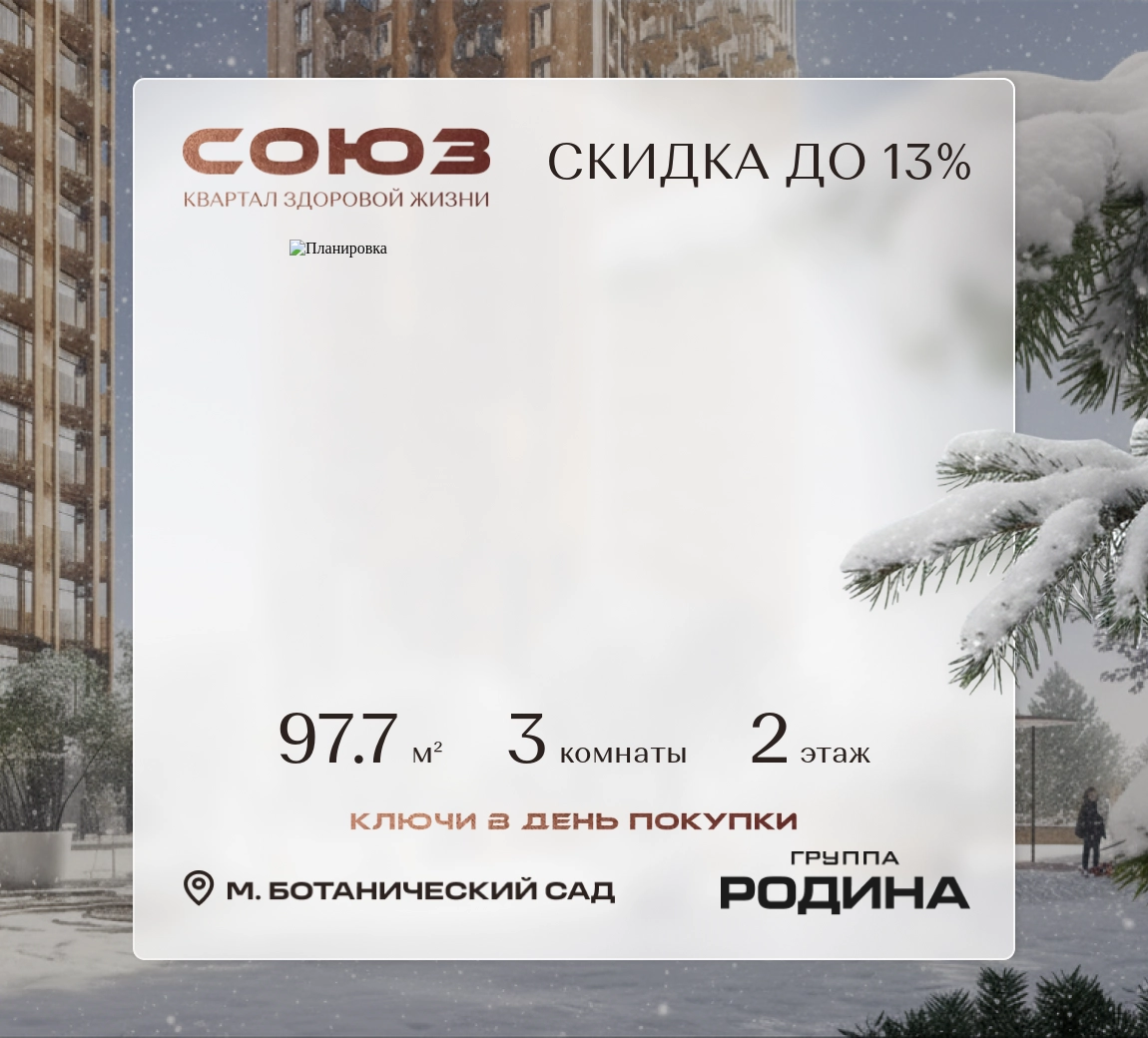 Продаётся 3-комнатная квартира площадью 97.7 м² на 2 этаже в Жилом Комплексе «Союз».