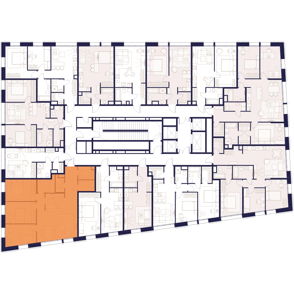 Уникальные форматы квартир с мастер-спальнями, приватными террасами, балконами, а также пентхаусы с открыточными видами на город.
