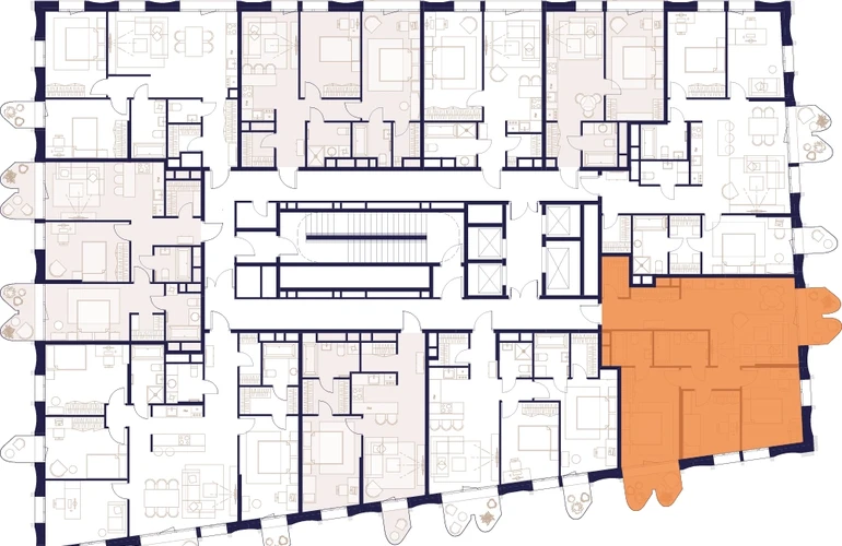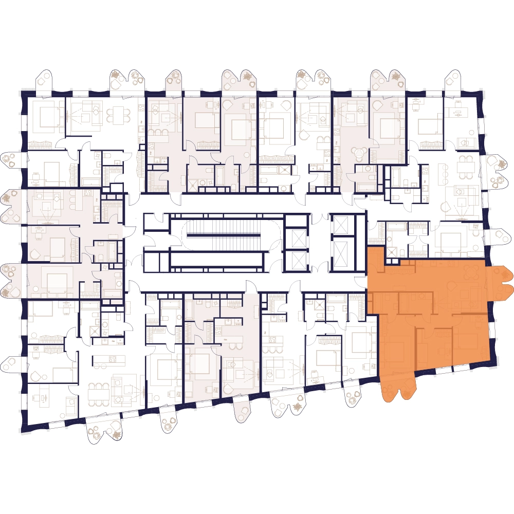 Уникальные форматы квартир с мастер-спальнями, приватными террасами, балконами, а также пентхаусы с открыточными видами на город.