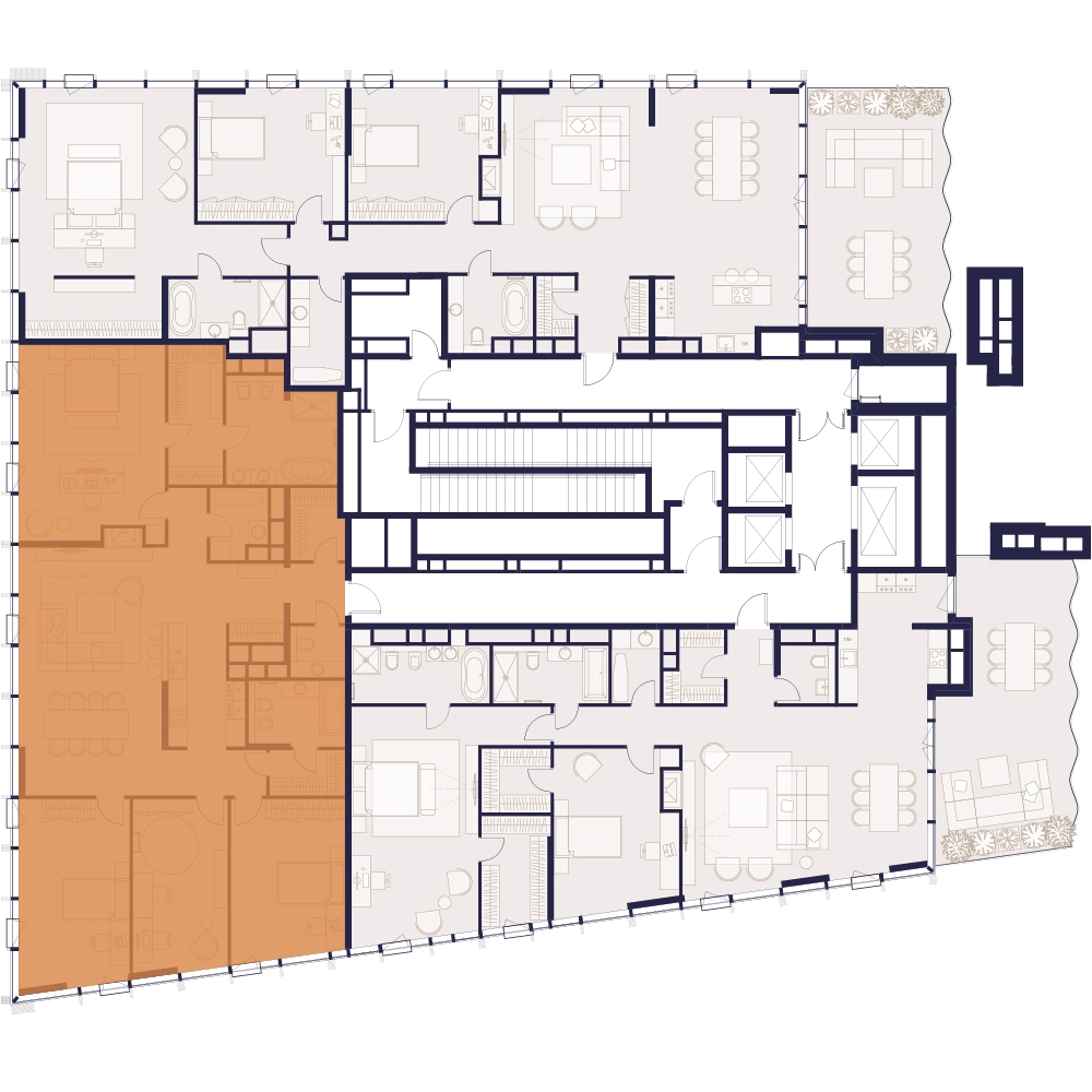 Уникальные форматы квартир с мастер-спальнями, приватными террасами, балконами, а также пентхаусы с открыточными видами на город.