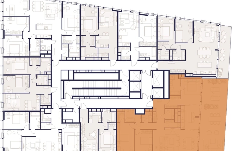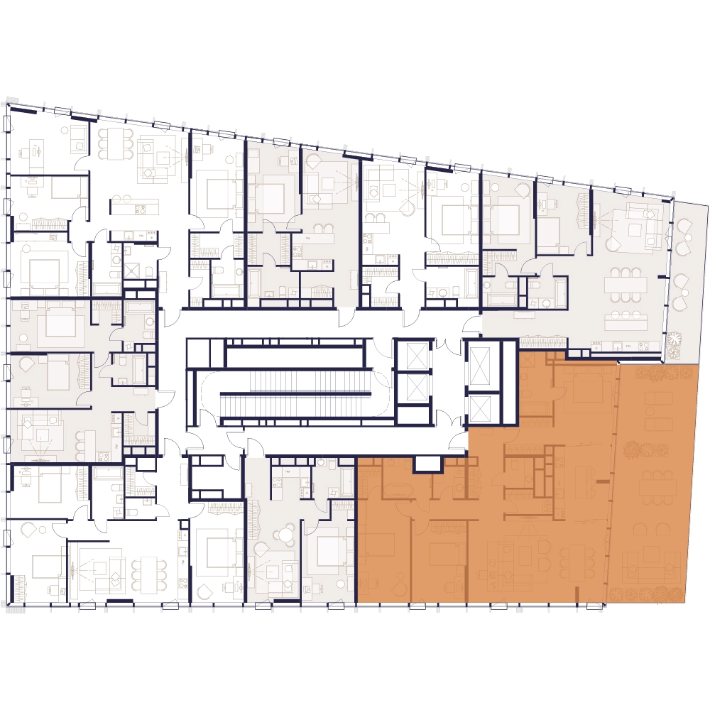 Уникальные форматы квартир с мастер-спальнями, приватными террасами, балконами, а также пентхаусы с открыточными видами на город.