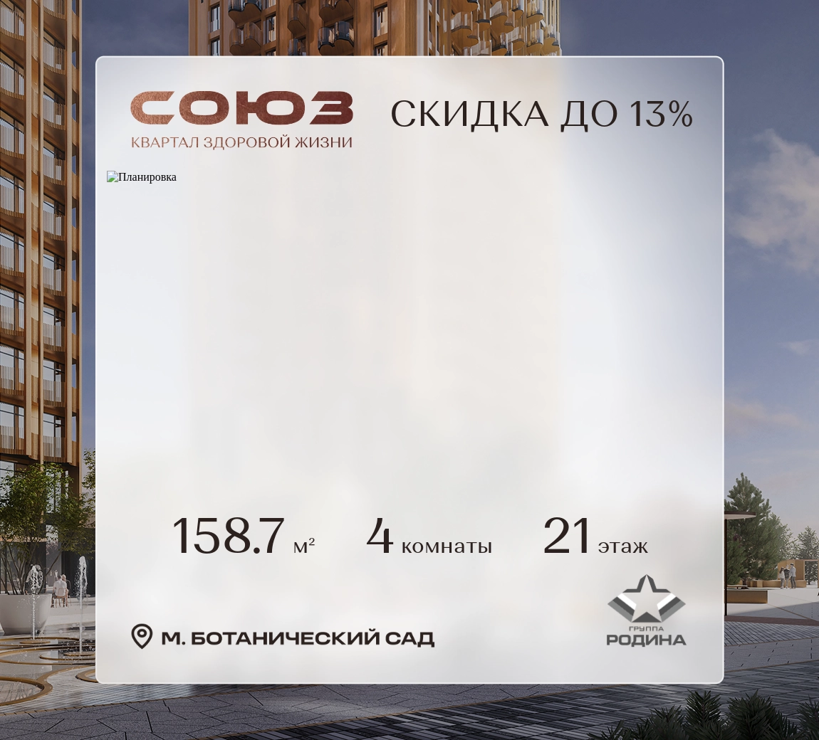 Продаётся 4-комнатная квартира площадью 159.2 м² на 21 этаже в Жилом Комплексе «Союз».