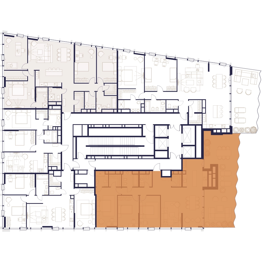 Уникальные форматы квартир с мастер-спальнями, приватными террасами, балконами, а также пентхаусы с открыточными видами на город.