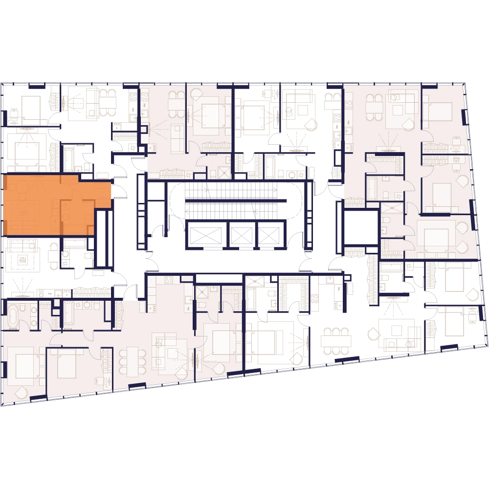 Уникальные форматы квартир с мастер-спальнями, приватными террасами, балконами, а также пентхаусы с открыточными видами на город.
