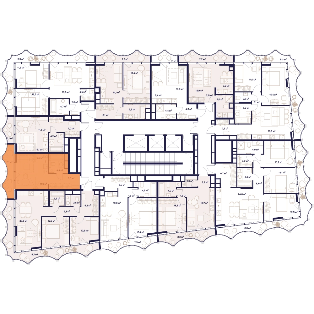 Уникальные форматы квартир с мастер-спальнями, приватными террасами, балконами, а также пентхаусы с открыточными видами на город.