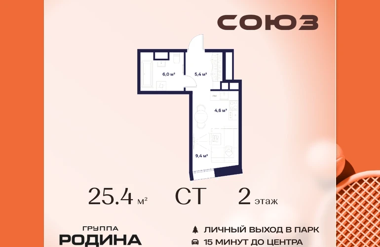 Рассрочка 0%Продаётся квартира-студия площадью 25.4 м² на 2 этаже в Жилом Комплексе «Союз».