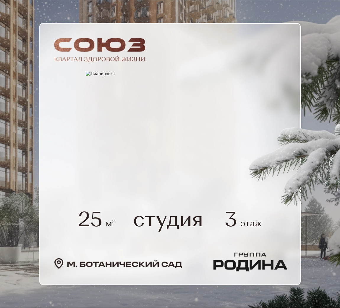 Рассрочка 0%Продаётся квартира-студия площадью 25 м² на 3 этаже в Жилом Комплексе «Союз».