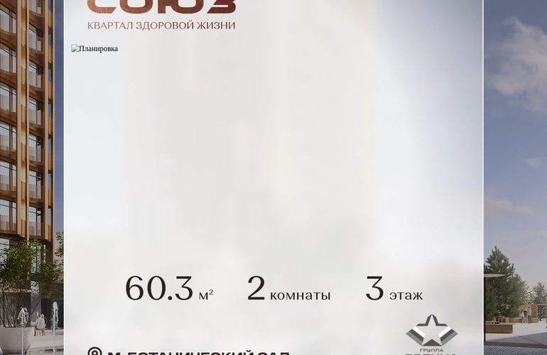 Рассрочка 0%Продаётся 2-комнатная квартира площадью 60.3 м² на 3 этаже в Жилом Комплексе «Союз».