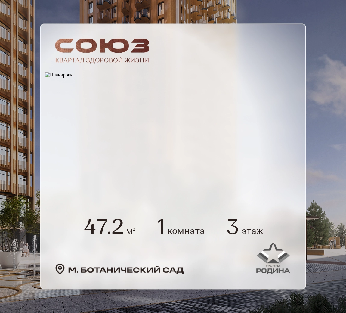 Рассрочка 0%Продаётся 1-комнатная квартира площадью 47.2 м² на 3 этаже в Жилом Комплексе «Союз».