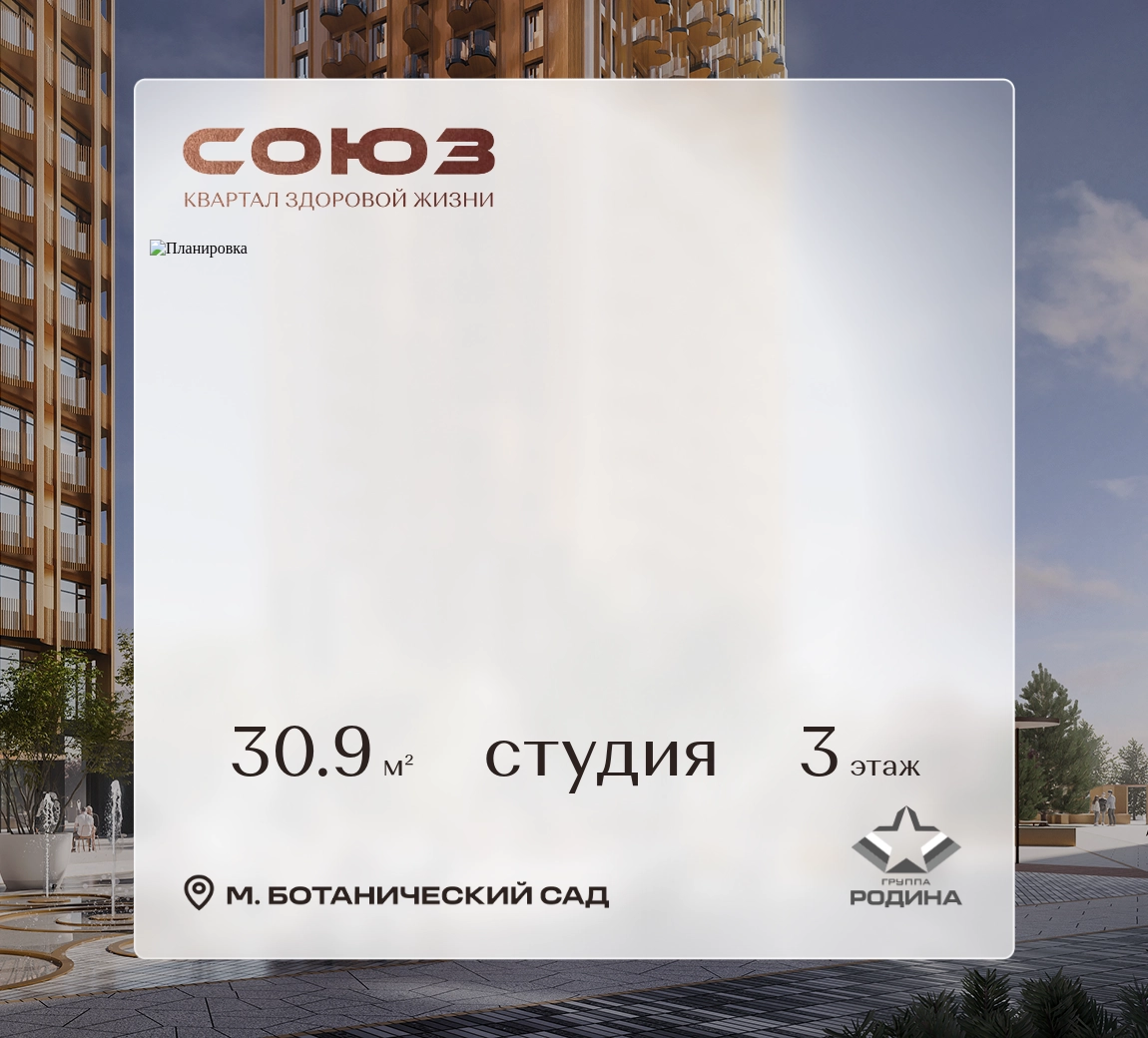 Рассрочка 0%Продаётся квартира-студия площадью 30.9 м² на 3 этаже в Жилом Комплексе «Союз».