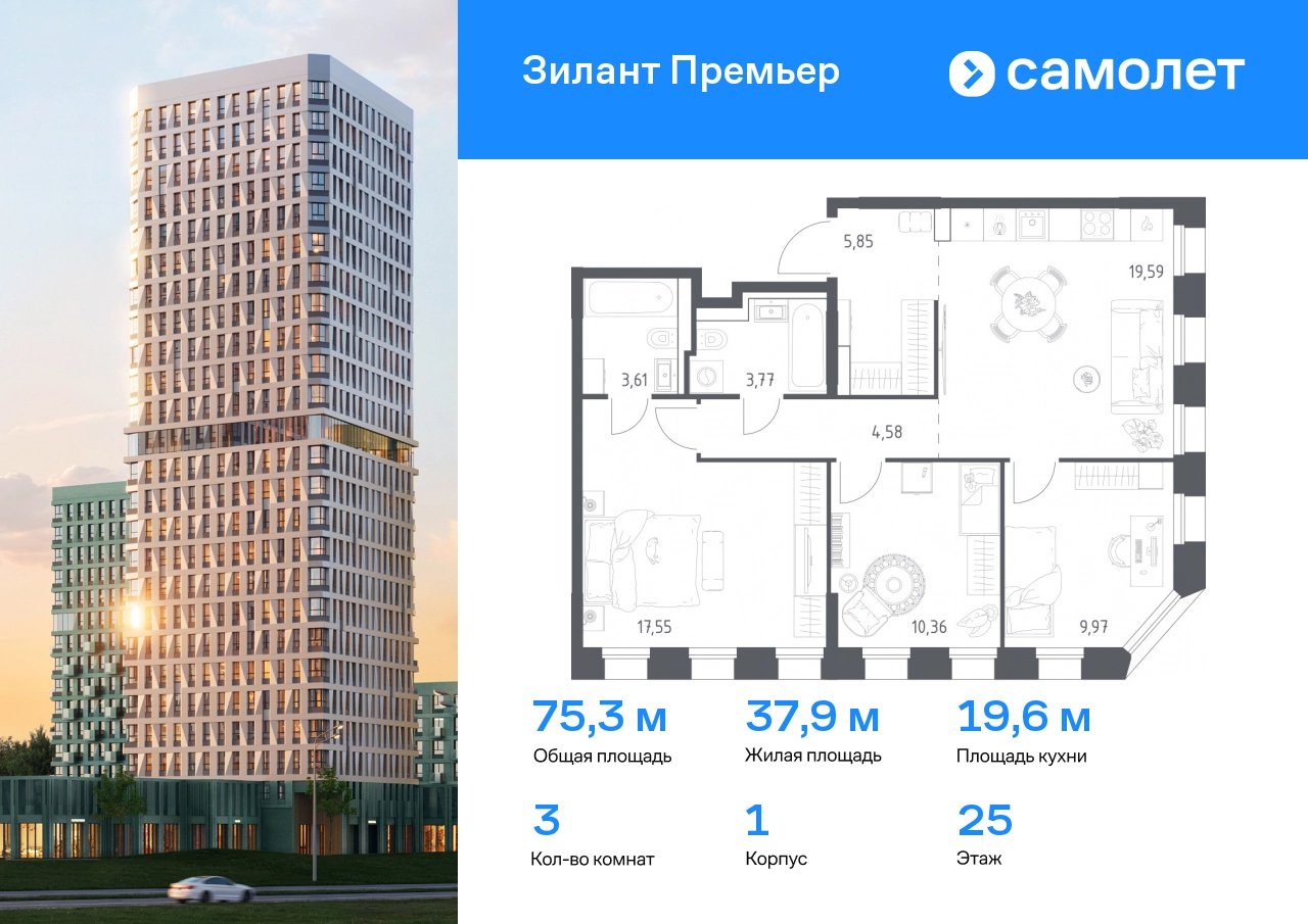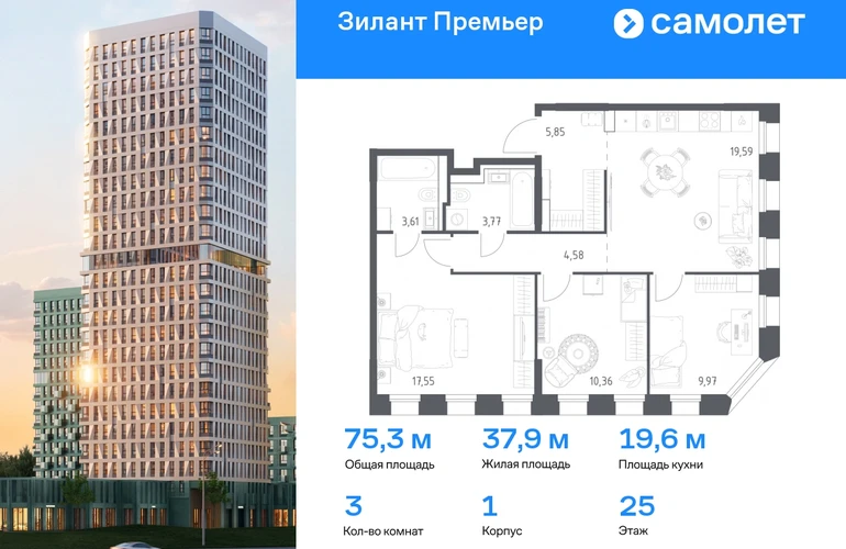 Строим кварталы для жизни с заботой о будущем. Предлагается 3-комнатная квартира комфорт-класса 75,28 кв.м в корпусе 1 на 25 этаже, в ЖК «Зилант Премьер» Квартира с предчистовой отделкой. Доступность дополнительных опций уточняйте у застройщика. Приобрести квартиру возможно по специальным акциям от застройщика, с текущими условиями акций можно ознакомиться в блоке «Акций». Цена динамическая и может отличаться, уточняйте актуальность у застройщика. Жилой комплекс «Зилант Премьер» расположен в молодом районе города. До кремля — 20 минут на авто. В получасе пешком — метро «Горки». Рядом Горкинско-Ометьевский лес, 3 школы, 2 детских сада и поликлиника, скоро откроется свой детский сад. Дома высотой от 1 до 25 этажей с фасадами, которые оживляют открытые французские балконы. В уютном дворе — детские площадки и воркаут-зона.#yan19-2r1769235#О застройщике