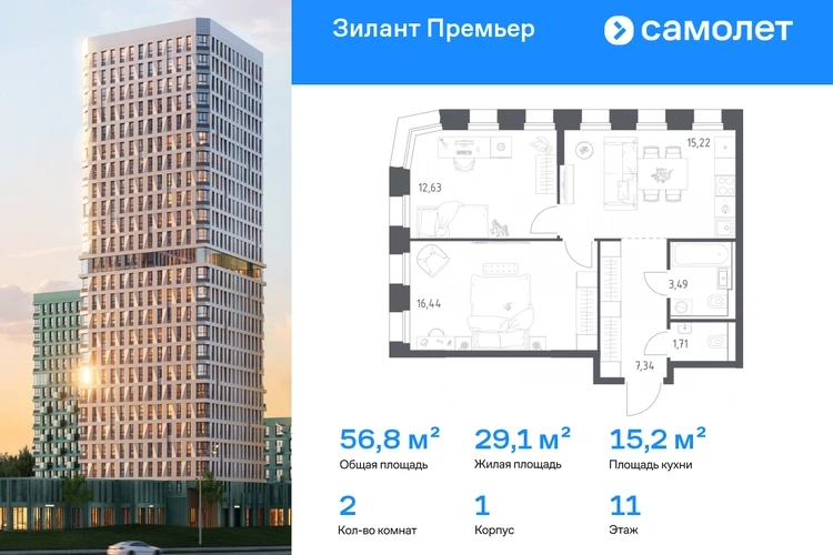 Строим кварталы для жизни с заботой о будущем. Предлагается 2-комнатная квартира комфорт-класса 56,83 кв.м в корпусе 1 на 11 этаже, в ЖК «Зилант Премьер» Квартира с предчистовой отделкой. Доступность дополнительных опций уточняйте у застройщика. Приобрести квартиру возможно по специальным акциям от застройщика, с текущими условиями акций можно ознакомиться в блоке «Акций». Цена динамическая и может отличаться, уточняйте актуальность у застройщика. Жилой комплекс «Зилант Премьер» расположен в молодом районе города. До кремля — 20 минут на авто. В получасе пешком — метро «Горки». Рядом Горкинско-Ометьевский лес, 3 школы, 2 детских сада и поликлиника, скоро откроется свой детский сад. Дома высотой от 1 до 25 этажей с фасадами, которые оживляют открытые французские балконы. В уютном дворе — детские площадки и воркаут-зона.#yan19-2r1818387#О застройщике