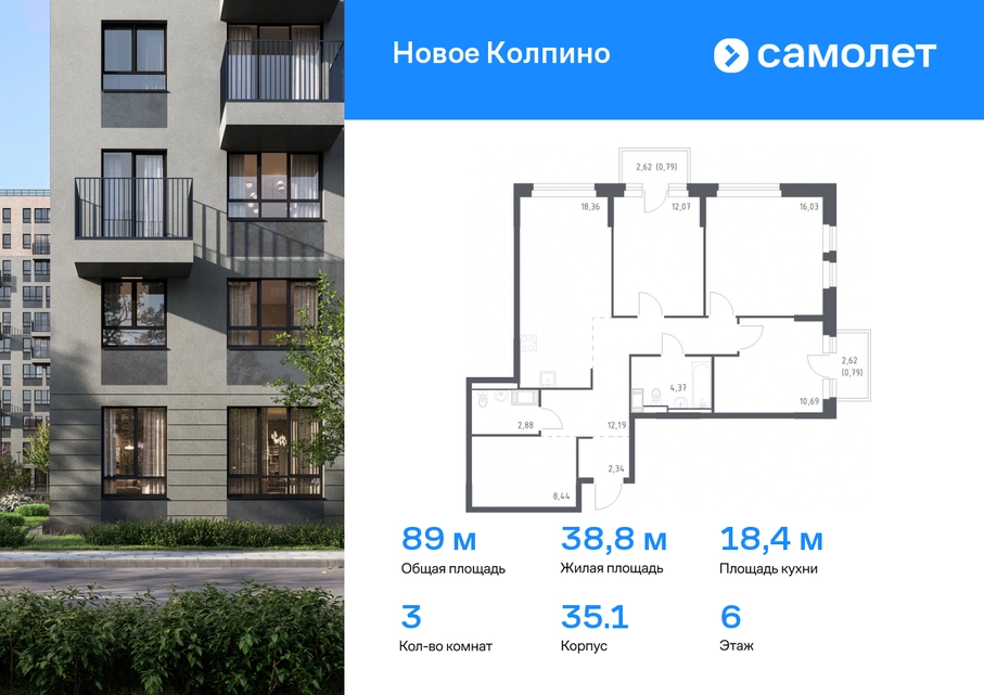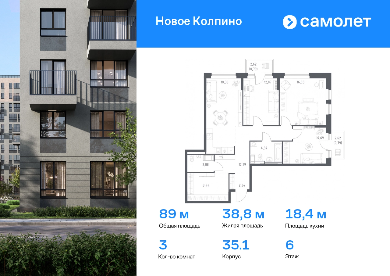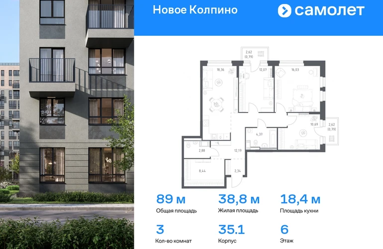 Строим кварталы для жизни с заботой о будущем. Предлагается 3-комнатная квартира комфорт-класса 88,95 кв.м в корпусе 35.1 на 6 этаже, в ЖК «Новое Колпино» Квартира с чистовой отделкой. Доступность дополнительных опций уточняйте у застройщика. Приобрести квартиру возможно по специальным акциям от застройщика, с текущими условиями акций можно ознакомиться в блоке «Акций». Цена динамическая и может отличаться, уточняйте актуальность у застройщика. Квартал «Новое Колпино» — современный квартал в тихом и зеленом районе Санкт-Петербурга. Здесь можно подолгу любоваться пышными кронами деревьев, подставляя лицо теплым лучам солнца. А еще в любой момент можно сесть в машину и уже через час оказаться в сердце Северной столицы. Будет легко планировать поездки: до центра Петербурга, или площади Восстания, — 25 минут на поезде. С территории квартала удобно выезжать на крупные магистрали: путь до Южного шоссе займет 15 минут на авто, а до Петрозаводского шоссе — всего 6 минут. В 20 минутах на авто находится метро «Рыбацкое», а в 7 минутах — ж/д станция Колпино. Проводите выходные на природе в Колпинском парке, который находится недалеко от квартала, на берегу реки Ижоры. Летом здесь можно вместе с детьми веселиться на аттракционах, кататься на лодке, играть в бадминтон или волейбол. А еще можно захватить орехов и покормить белок. Всего 7 минут на авто или автобусе — и вы в центре города Колпино. Взрослых впечатлит русская архитектура старинных церквей, а детям понравится забавный памятник героям мультфильма «Трое из Простоквашино». В «Новом Колпино» будут работать 4 детских сада, 3 из них уже готовы встречать малышей. Ребята постарше могут ходить на занятия в школу с собственным бассейном, в проекте уже работает новая современная школа с бассейном Корпуса высотой 11 этажей с французскими и панорамными балконами отделаны штукатуркой и облицовочным кирпичом. Вдохновение для палитры нам подарили оттенки рассветного неба: терракотовый, персиковый, песочный. Во дворе найдется интересное занятие для всех жителей квартала. Взрослые смогут устраивать тренировки на свежем воздухе в спортивных зонах, дети будут целый день веселиться на игровых площадках. А еще мы позаботились о вашей безопасности и закрыли дворы от машин. Возвращайтесь домой с чемоданом из путешествия или коляской из парка. На пути в подъезд вы не встретите ступенек. Оставить транспорт можно будет в специальном помещении на первом этаже. По желанию вы сможете получить ключи от квартиры с готовой отделкой. Мы положим ламинат, поклеим обои, установим мебель и сантехнику. Доступен вариант с готовой кухней — бежевые тона отделки станут фоном для интерьера мечты. Чтобы сразу отпраздновать новоселье, закажите у нас декор и мебельные сеты. А если хочется воплотить собственные идеи в интерьере, присмотритесь к опции — без отделки.#yan19-2r1588984#О застройщике