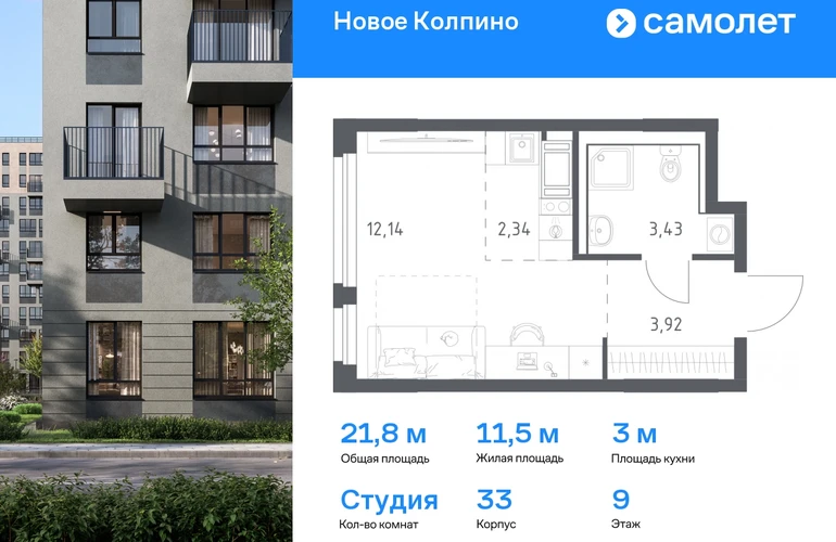 Строим кварталы для жизни с заботой о будущем. Предлагается квартира студия комфорт-класса 21,83 кв.м в корпусе 33 на 9 этаже, в ЖК «Новое Колпино» Квартира без отделки. Доступность опции «отделка» и возможность комплектации мебелью и декором уточняйте у застройщика. Приобрести квартиру возможно по специальным акциям от застройщика, с текущими условиями акций можно ознакомиться в блоке «Акций». Цена динамическая и может отличаться, уточняйте актуальность у застройщика. Квартал «Новое Колпино» — современный квартал в тихом и зеленом районе Санкт-Петербурга. Здесь можно подолгу любоваться пышными кронами деревьев, подставляя лицо теплым лучам солнца. А еще в любой момент можно сесть в машину и уже через час оказаться в сердце Северной столицы. Будет легко планировать поездки: до центра Петербурга, или площади Восстания, — 25 минут на поезде. С территории квартала удобно выезжать на крупные магистрали: путь до Южного шоссе займет 15 минут на авто, а до Петрозаводского шоссе — всего 6 минут. В 20 минутах на авто находится метро «Рыбацкое», а в 7 минутах — ж/д станция Колпино. Проводите выходные на природе в Колпинском парке, который находится недалеко от квартала, на берегу реки Ижоры. Летом здесь можно вместе с детьми веселиться на аттракционах, кататься на лодке, играть в бадминтон или волейбол. А еще можно захватить орехов и покормить белок. Всего 7 минут на авто или автобусе — и вы в центре города Колпино. Взрослых впечатлит русская архитектура старинных церквей, а детям понравится забавный памятник героям мультфильма «Трое из Простоквашино». В «Новом Колпино» будут работать 4 детских сада, 3 из них уже готовы встречать малышей. Ребята постарше могут ходить на занятия в школу с собственным бассейном, в проекте уже работает новая современная школа с бассейном Корпуса высотой 11 этажей с французскими и панорамными балконами отделаны штукатуркой и облицовочным кирпичом. Вдохновение для палитры нам подарили оттенки рассветного неба: терракотовый, персиковый, песочный. Во дворе найдется интересное занятие для всех жителей квартала. Взрослые смогут устраивать тренировки на свежем воздухе в спортивных зонах, дети будут целый день веселиться на игровых площадках. А еще мы позаботились о вашей безопасности и закрыли дворы от машин. Возвращайтесь домой с чемоданом из путешествия или коляской из парка. На пути в подъезд вы не встретите ступенек. Оставить транспорт можно будет в специальном помещении на первом этаже. По желанию вы сможете получить ключи от квартиры с готовой отделкой. Мы положим ламинат, поклеим обои, установим мебель и сантехнику. Доступен вариант с готовой кухней — бежевые тона отделки станут фоном для интерьера мечты. Чтобы сразу отпраздновать новоселье, закажите у нас декор и мебельные сеты. А если хочется воплотить собственные идеи в интерьере, присмотритесь к опции — без отделки.#yan19-2r1608229#О застройщике