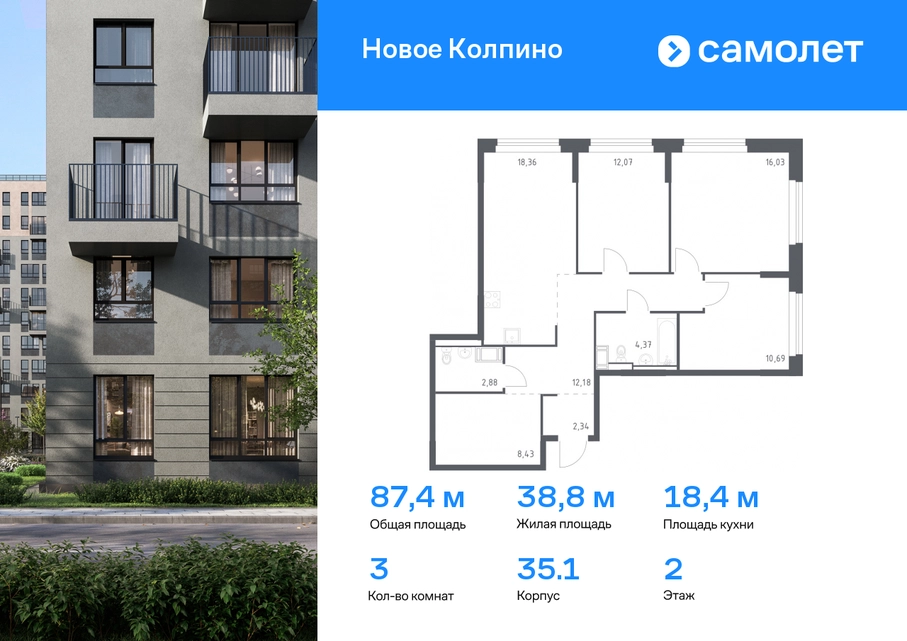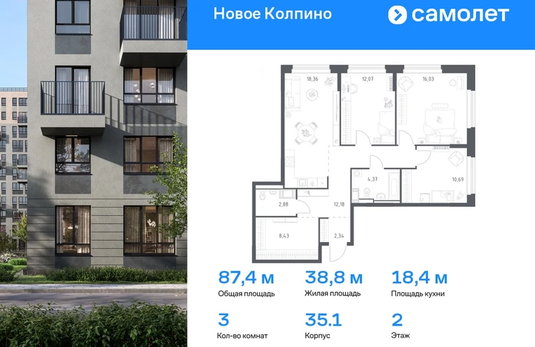 Строим кварталы для жизни с заботой о будущем. Предлагается 3-комнатная квартира комфорт-класса 87,35 кв.м в корпусе 35.1 на 2 этаже, в ЖК «Новое Колпино» Квартира с чистовой отделкой. Доступность дополнительных опций уточняйте у застройщика. Приобрести квартиру возможно по специальным акциям от застройщика, с текущими условиями акций можно ознакомиться в блоке «Акций». Цена динамическая и может отличаться, уточняйте актуальность у застройщика. Квартал «Новое Колпино» — современный квартал в тихом и зеленом районе Санкт-Петербурга. Здесь можно подолгу любоваться пышными кронами деревьев, подставляя лицо теплым лучам солнца. А еще в любой момент можно сесть в машину и уже через час оказаться в сердце Северной столицы. Будет легко планировать поездки: до центра Петербурга, или площади Восстания, — 25 минут на поезде. С территории квартала удобно выезжать на крупные магистрали: путь до Южного шоссе займет 15 минут на авто, а до Петрозаводского шоссе — всего 6 минут. В 20 минутах на авто находится метро «Рыбацкое», а в 7 минутах — ж/д станция Колпино. Проводите выходные на природе в Колпинском парке, который находится недалеко от квартала, на берегу реки Ижоры. Летом здесь можно вместе с детьми веселиться на аттракционах, кататься на лодке, играть в бадминтон или волейбол. А еще можно захватить орехов и покормить белок. Всего 7 минут на авто или автобусе — и вы в центре города Колпино. Взрослых впечатлит русская архитектура старинных церквей, а детям понравится забавный памятник героям мультфильма «Трое из Простоквашино». В «Новом Колпино» будут работать 4 детских сада, 3 из них уже готовы встречать малышей. Ребята постарше могут ходить на занятия в школу с собственным бассейном, в проекте уже работает новая современная школа с бассейном Корпуса высотой 11 этажей с французскими и панорамными балконами отделаны штукатуркой и облицовочным кирпичом. Вдохновение для палитры нам подарили оттенки рассветного неба: терракотовый, персиковый, песочный. Во дворе найдется интересное занятие для всех жителей квартала. Взрослые смогут устраивать тренировки на свежем воздухе в спортивных зонах, дети будут целый день веселиться на игровых площадках. А еще мы позаботились о вашей безопасности и закрыли дворы от машин. Возвращайтесь домой с чемоданом из путешествия или коляской из парка. На пути в подъезд вы не встретите ступенек. Оставить транспорт можно будет в специальном помещении на первом этаже. По желанию вы сможете получить ключи от квартиры с готовой отделкой. Мы положим ламинат, поклеим обои, установим мебель и сантехнику. Доступен вариант с готовой кухней — бежевые тона отделки станут фоном для интерьера мечты. Чтобы сразу отпраздновать новоселье, закажите у нас декор и мебельные сеты. А если хочется воплотить собственные идеи в интерьере, присмотритесь к опции — без отделки.#yan19-2r1722471#О застройщике