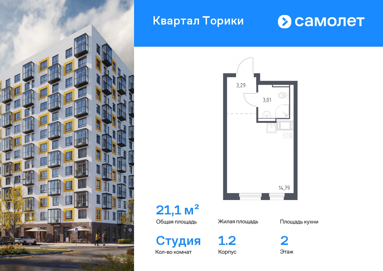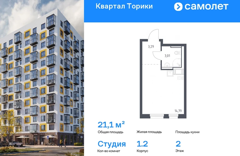Строим кварталы для жизни с заботой о будущем. Предлагается квартира студия комфорт-класса 21,09 кв.м в корпусе 1.2 на 2 этаже, в ЖК «Квартал Торики» Квартира с чистовой отделкой. Доступность дополнительных опций уточняйте у застройщика. Приобрести квартиру возможно по специальным акциям от застройщика, с текущими условиями акций можно ознакомиться в блоке «Акций». Цена динамическая и может отличаться, уточняйте актуальность у застройщика. Жилой комплекс «Квартал Торики» — комфортное место для семьи. Из окон открывается голубое небо, а все необходимое находится рядом. До центра Санкт-Петербурга — 40 минут на авто, до метро «Проспект Ветеранов» — 20 минут, рядом три автобусные остановки. Всего 15–20 минут пешком до Гореловского озера для прогулок и пикников. Полежаевский и Южно-Приморский парки подходят для выгула собак, а набережная канала реки Дудергофки — для велосипедных прогулок. В квартале — школа и 2 детских сада. Утро можно начать в кофейне на первом этаже, а вечером — закупить продуктов. Современные монолитные дома высотой 12 этажей выполнены в нейтральной цветовой гамме с яркими акцентами. Дворы с уютными «лесными гостиными» закрыты для посторонних — дети на игровых площадках будут в безопасности. На территории есть многоуровневые и плоскостные паркинги. Входы в подъезды без ступенек, предусмотрены кладовые и помещения для колясок и велосипедов. #yan19-2r1824981#О застройщике