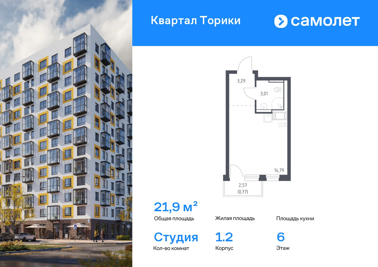 Строим кварталы для жизни с заботой о будущем. Предлагается квартира студия комфорт-класса 21,86 кв.м в корпусе 1.2 на 6 этаже, в ЖК «Квартал Торики» Квартира с чистовой отделкой. Доступность дополнительных опций уточняйте у застройщика. Приобрести квартиру возможно по специальным акциям от застройщика, с текущими условиями акций можно ознакомиться в блоке «Акций». Цена динамическая и может отличаться, уточняйте актуальность у застройщика. Жилой комплекс «Квартал Торики» — комфортное место для семьи. Из окон открывается голубое небо, а все необходимое находится рядом. До центра Санкт-Петербурга — 40 минут на авто, до метро «Проспект Ветеранов» — 20 минут, рядом три автобусные остановки. Всего 15–20 минут пешком до Гореловского озера для прогулок и пикников. Полежаевский и Южно-Приморский парки подходят для выгула собак, а набережная канала реки Дудергофки — для велосипедных прогулок. В квартале — школа и 2 детских сада. Утро можно начать в кофейне на первом этаже, а вечером — закупить продуктов. Современные монолитные дома высотой 12 этажей выполнены в нейтральной цветовой гамме с яркими акцентами. Дворы с уютными «лесными гостиными» закрыты для посторонних — дети на игровых площадках будут в безопасности. На территории есть многоуровневые и плоскостные паркинги. Входы в подъезды без ступенек, предусмотрены кладовые и помещения для колясок и велосипедов. #yan19-2r1824990#О застройщике