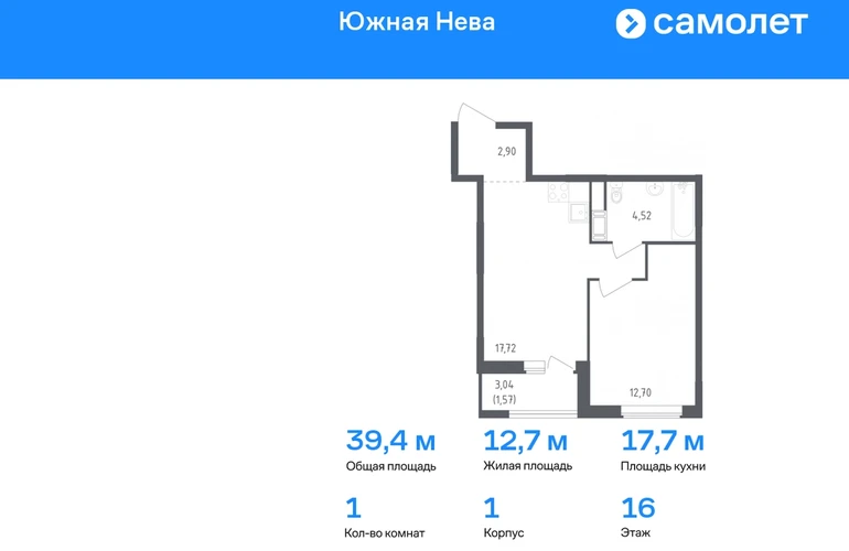 Строим кварталы для жизни с заботой о будущем. Предлагается 1-комнатная квартира комфорт-класса 39,41 кв.м в корпусе 1 на 16 этаже, в ЖК «Южная Нева» Квартира с предчистовой отделкой. Доступность дополнительных опций уточняйте у застройщика. Приобрести квартиру возможно по специальным акциям от застройщика, с текущими условиями акций можно ознакомиться в блоке «Акций». Цена динамическая и может отличаться, уточняйте актуальность у застройщика. Спокойное течение Невы, монументальные арки Володарского моста и простор лесопарка создают атмосферу жилого комплекса «Южная Нева». До КАДа — всего 5 минут, до центра города — 30 минут на машине, а станция метро «Пролетарская» в 10 минутах. Для любителей природы рядом Невский лесопарк и «МЕГА Парк», где можно бегать, кататься на велосипеде или посетить веревочный парк. Для детей предусмотрены школа и 2 детских сада, а на первых этажах домов откроются салоны красоты, магазины и кафе. В шаговой доступности — фитнес-центр и торговые центры «МЕГА Дыбенко» и «Лондон Молл». Комплекс состоит из 11 монолитных домов высотой от 12 до 23 этажей с разноцветными фасадами и панорамными балконами. Двор украшают 7 мостов-навесов, а центральная аллея — собственная Нева. Здесь можно позагорать на лежаках или поиграть в шахматы, позаниматься на спортивной площадке или отвести ребенка в игровую зону на встречу с друзьями. В «Южной Неве» есть планировки с проходными кухнями-гостиными и гардеробными.#yan19-2r1595621#О застройщике