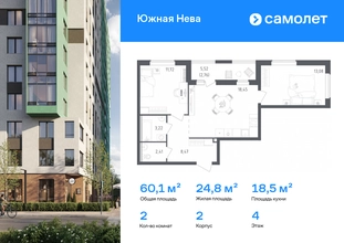 Строим кварталы для жизни с заботой о будущем. Предлагается 2-комнатная квартира комфорт-класса 60,11 кв.м в корпусе 2 на 4 этаже, в ЖК «Южная Нева» Квартира без отделки. Доступность опции «отделка» и возможность комплектации мебелью и декором уточняйте у застройщика. Приобрести квартиру возможно по специальным акциям от застройщика, с текущими условиями акций можно ознакомиться в блоке «Акций». Цена динамическая и может отличаться, уточняйте актуальность у застройщика. Спокойное течение Невы, монументальные арки Володарского моста и простор лесопарка создают атмосферу жилого комплекса «Южная Нева». До КАДа — всего 5 минут, до центра города — 30 минут на машине, а станция метро «Пролетарская» в 10 минутах. Для любителей природы рядом Невский лесопарк и «МЕГА Парк», где можно бегать, кататься на велосипеде или посетить веревочный парк. Для детей предусмотрены школа и 2 детских сада, а на первых этажах домов откроются салоны красоты, магазины и кафе. В шаговой доступности — фитнес-центр и торговые центры «МЕГА Дыбенко» и «Лондон Молл». Комплекс состоит из 11 монолитных домов высотой от 12 до 23 этажей с разноцветными фасадами и панорамными балконами. Двор украшают 7 мостов-навесов, а центральная аллея — собственная Нева. Здесь можно позагорать на лежаках или поиграть в шахматы, позаниматься на спортивной площадке или отвести ребенка в игровую зону на встречу с друзьями. В «Южной Неве» есть планировки с проходными кухнями-гостиными и гардеробными.#yan19-2r1813115#О застройщике