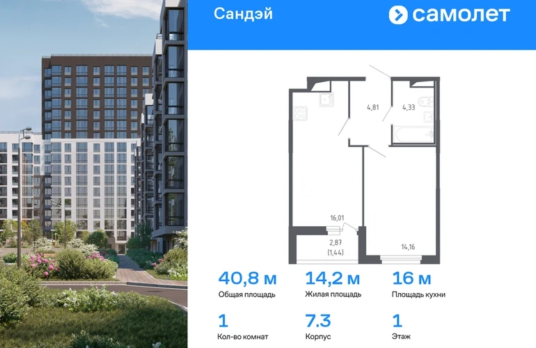 Строим кварталы для жизни с заботой о будущем. Предлагается 1-комнатная квартира комфорт-класса 40,75 кв.м в корпусе 7.3 на 1 этаже, в ЖК «Сандэй» Квартира с чистовой отделкой. Доступность дополнительных опций уточняйте у застройщика. Приобрести квартиру возможно по специальным акциям от застройщика, с текущими условиями акций можно ознакомиться в блоке «Акций». Цена динамическая и может отличаться, уточняйте актуальность у застройщика. Сандэй – современный жилой комплекс на юго-западе Санкт-Петербурга у парка Сосновая поляна. Мы уже построили 7 средне-этажных домов, вся социальная и бытовая инфраструктура уже работает, рядом есть детские сады, школы, поликлиники и магазины – проживание будет очень комфортным. Прямо под окнами большой зеленый парк для прогулок - Сосновая Поляна В 7 минутах пешком расположена железнодорожная станция, от которой можно за 25 минут добраться до центральной части города – Балтийского вокзала. В 15 минутах езды самые известные пригороды Петербурга: Стрельна, Петергоф, а также берег Финского залива.#yan19-2r1596694#О застройщике
