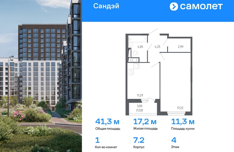 Строим кварталы для жизни с заботой о будущем. Предлагается 1-комнатная квартира комфорт-класса 41,31 кв.м в корпусе 7.2 на 4 этаже, в ЖК «Сандэй» Квартира с чистовой отделкой. Доступность дополнительных опций уточняйте у застройщика. Приобрести квартиру возможно по специальным акциям от застройщика, с текущими условиями акций можно ознакомиться в блоке «Акций». Цена динамическая и может отличаться, уточняйте актуальность у застройщика. Сандэй – современный жилой комплекс на юго-западе Санкт-Петербурга у парка Сосновая поляна. Мы уже построили 7 средне-этажных домов, вся социальная и бытовая инфраструктура уже работает, рядом есть детские сады, школы, поликлиники и магазины – проживание будет очень комфортным. Прямо под окнами большой зеленый парк для прогулок - Сосновая Поляна В 7 минутах пешком расположена железнодорожная станция, от которой можно за 25 минут добраться до центральной части города – Балтийского вокзала. В 15 минутах езды самые известные пригороды Петербурга: Стрельна, Петергоф, а также берег Финского залива.#yan19-2r1655079#О застройщике