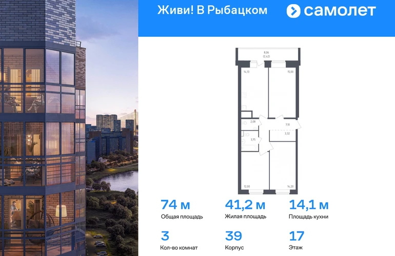 Строим кварталы для жизни с заботой о будущем. Предлагается 3-комнатная квартира комфорт-класса 74 кв.м в корпусе 39 на 17 этаже, в ЖК «Живи! В Рыбацком» Квартира с предчистовой отделкой. Доступность дополнительных опций уточняйте у застройщика. Приобрести квартиру возможно по специальным акциям от застройщика, с текущими условиями акций можно ознакомиться в блоке «Акций». Цена динамическая и может отличаться, уточняйте актуальность у застройщика. Квартал «Живи! В Рыбацком» в Невском районе Санкт-Петербурга расположен рядом с рекой Славянкой и парком. Всего 20 минут пешей прогулки — и вы у метро «Рыбацкое». Автомобилисты будут добираться до КАДа за десять минут. В квартале работают два детских сада, школа и кабинет врача. На первых этажах зданий открыты магазины, кафе и салоны красоты. Во дворе — зеленые бульвары, воркаут-площадка, спортивный и игровой кластеры. Для машин — подземный паркинг. Кирпично-монолитные дома с каменной облицовкой — воплощение долговечности и тепла. Есть в квартале и камерный 30-й корпус, в нем восемь этажей, 70 квартир и приватный двор-парк. В сквозных парадных — безбарьерная среда, помещения для хранения колясок и велосипедов и система видеонаблюдения. #yan19-2r1691873#О застройщике