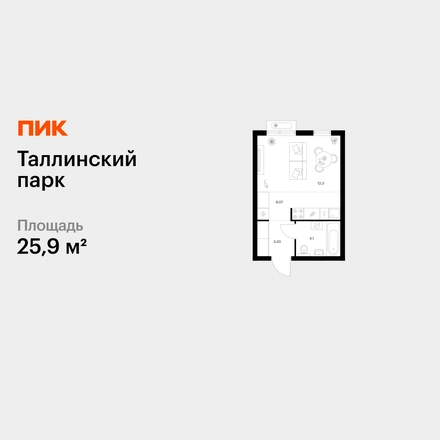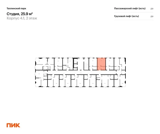 Продаётся квартира-студия площадью 25.90 кв.м на 2 этаже 12 этажного дома (Корпус 4.1, секция 4) проекта ПИК Таллинский парк. Светлый просторный подъезд на уровне земли, функциональная планировка, большие окна, с отделкой. <br> <br>«Таллинский парк» — проект в Ленинградской области, в районе Новоселье. До станции метро «Проспект Ветеранов» — 15 минут на автомобиле, а до КАД можно доехать всего за 4 минуты. <br> <br>«Таллинский парк» включает 16 жилых домов, детский сад и школу. В проекте появится центральный сквер с обильным озеленением, а через весь квартал протянутся широкие пешеходные бульвары. В зелёных дворах-парках будут оборудованы современные детские и спортивные площадки, обустроены места для отдыха. На первых этажах разместятся магазины, кафе и другие сервисы. <br> <br>Район Новоселье активно развивается в городском формате: здесь уже работают детские сады, школа и магазины. Для любителей зимних видов спорта открыта круглосуточная ледовая арена Ice Rink. За покупками и развлечениями также можно быстро доехать: 10 минут — и вы в Аутлете Fashion House Таллинское, гипермаркетах Лента, Лемана про и Окей. <br> <br>В 10 минутах на автомобиле находится Финский залив, на берегу которого расположились объекты культурного наследия. Рядом — Константиновский парк с отреставрированным дворцом, а чуть дальше расположена усадьба Знаменка. В великолепном Петергофе вы будете уже через 20 минут. Артикул - 1026665О застройщике
