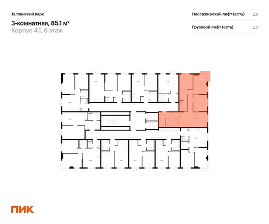 Продаётся 3-комн.квартира площадью 85.10 кв.м на 6 этаже 12 этажного дома (Корпус 4.1, секция 3) проекта ПИК Таллинский парк. Светлый просторный подъезд на уровне земли, функциональная планировка, большие окна, с отделкой. <br> <br>«Таллинский парк» — проект в Ленинградской области, в районе Новоселье. До станции метро «Проспект Ветеранов» — 15 минут на автомобиле, а до КАД можно доехать всего за 4 минуты. <br> <br>«Таллинский парк» включает 16 жилых домов, детский сад и школу. В проекте появится центральный сквер с обильным озеленением, а через весь квартал протянутся широкие пешеходные бульвары. В зелёных дворах-парках будут оборудованы современные детские и спортивные площадки, обустроены места для отдыха. На первых этажах разместятся магазины, кафе и другие сервисы. <br> <br>Район Новоселье активно развивается в городском формате: здесь уже работают детские сады, школа и магазины. Для любителей зимних видов спорта открыта круглосуточная ледовая арена Ice Rink. За покупками и развлечениями также можно быстро доехать: 10 минут — и вы в Аутлете Fashion House Таллинское, гипермаркетах Лента, Лемана про и Окей. <br> <br>В 10 минутах на автомобиле находится Финский залив, на берегу которого расположились объекты культурного наследия. Рядом — Константиновский парк с отреставрированным дворцом, а чуть дальше расположена усадьба Знаменка. В великолепном Петергофе вы будете уже через 20 минут. Артикул - 1026591О застройщике