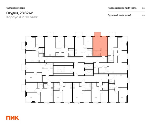 Продаётся квартира-студия площадью 28.62 кв.м на 10 этаже 12 этажного дома (Корпус 4.2, секция 1) проекта ПИК Таллинский парк. Светлый просторный подъезд на уровне земли, функциональная планировка, большие окна. <br> <br>«Таллинский парк» — проект в Ленинградской области, в районе Новоселье. До станции метро «Проспект Ветеранов» — 15 минут на автомобиле, а до КАД можно доехать всего за 4 минуты. <br> <br>«Таллинский парк» включает 16 жилых домов, детский сад и школу. В проекте появится центральный сквер с обильным озеленением, а через весь квартал протянутся широкие пешеходные бульвары. В зелёных дворах-парках будут оборудованы современные детские и спортивные площадки, обустроены места для отдыха. На первых этажах разместятся магазины, кафе и другие сервисы. <br> <br>Район Новоселье активно развивается в городском формате: здесь уже работают детские сады, школа и магазины. Для любителей зимних видов спорта открыта круглосуточная ледовая арена Ice Rink. За покупками и развлечениями также можно быстро доехать: 10 минут — и вы в Аутлете Fashion House Таллинское, гипермаркетах Лента, Лемана про и Окей. <br> <br>В 10 минутах на автомобиле находится Финский залив, на берегу которого расположились объекты культурного наследия. Рядом — Константиновский парк с отреставрированным дворцом, а чуть дальше расположена усадьба Знаменка. В великолепном Петергофе вы будете уже через 20 минут. Артикул - 1026468О застройщике