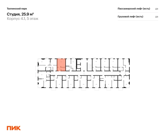 Продаётся квартира-студия площадью 25.90 кв.м на 5 этаже 12 этажного дома (Корпус 4.1, секция 4) проекта ПИК Таллинский парк. Светлый просторный подъезд на уровне земли, функциональная планировка, большие окна, с отделкой. <br> <br>«Таллинский парк» — проект в Ленинградской области, в районе Новоселье. До станции метро «Проспект Ветеранов» — 15 минут на автомобиле, а до КАД можно доехать всего за 4 минуты. <br> <br>«Таллинский парк» включает 16 жилых домов, детский сад и школу. В проекте появится центральный сквер с обильным озеленением, а через весь квартал протянутся широкие пешеходные бульвары. В зелёных дворах-парках будут оборудованы современные детские и спортивные площадки, обустроены места для отдыха. На первых этажах разместятся магазины, кафе и другие сервисы. <br> <br>Район Новоселье активно развивается в городском формате: здесь уже работают детские сады, школа и магазины. Для любителей зимних видов спорта открыта круглосуточная ледовая арена. За покупками и развлечениями также можно быстро доехать: 10 минут — и вы в гипермаркетах Лента, Лемана ПРО и Окей. <br> <br>В 10 минутах на автомобиле находится Финский залив, на берегу которого расположились объекты культурного наследия. Рядом — Константиновский парк с отреставрированным дворцом, а чуть дальше расположена усадьба Знаменка. В великолепном Петергофе вы будете уже через 20 минут. Артикул - 1026714О застройщике