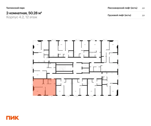 Продаётся 2-комн.квартира площадью 50.28 кв.м на 12 этаже 12 этажного дома (Корпус 4.2, секция 1) проекта ПИК Таллинский парк. Светлый просторный подъезд на уровне земли, функциональная планировка, большие окна. <br> <br>«Таллинский парк» — проект в Ленинградской области, в районе Новоселье. До станции метро «Проспект Ветеранов» — 15 минут на автомобиле, а до КАД можно доехать всего за 4 минуты. <br> <br>«Таллинский парк» включает 16 жилых домов, детский сад и школу. В проекте появится центральный сквер с обильным озеленением, а через весь квартал протянутся широкие пешеходные бульвары. В зелёных дворах-парках будут оборудованы современные детские и спортивные площадки, обустроены места для отдыха. На первых этажах разместятся магазины, кафе и другие сервисы. <br> <br>Район Новоселье активно развивается в городском формате: здесь уже работают детские сады, школа и магазины. Для любителей зимних видов спорта открыта круглосуточная ледовая арена Ice Rink. За покупками и развлечениями также можно быстро доехать: 10 минут — и вы в Аутлете Fashion House Таллинское, гипермаркетах Лента, Лемана про и Окей. <br> <br>В 10 минутах на автомобиле находится Финский залив, на берегу которого расположились объекты культурного наследия. Рядом — Константиновский парк с отреставрированным дворцом, а чуть дальше расположена усадьба Знаменка. В великолепном Петергофе вы будете уже через 20 минут. Артикул - 1026545О застройщике