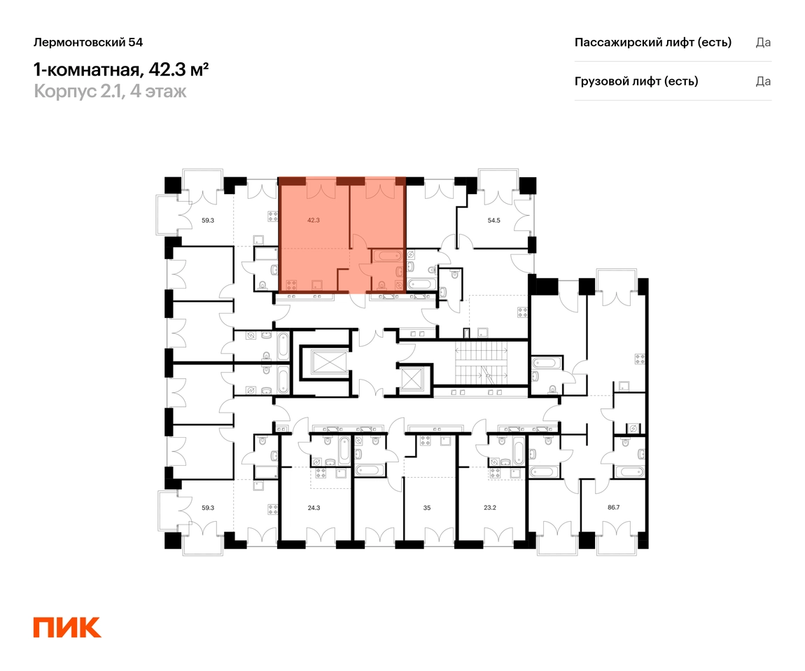 Продаётся 1-комн.квартира площадью 42.30 кв.м на 2 этаже 7 этажного дома (Корпус 2.1, секция 7) проекта ПИК Лермонтовский 54. Светлый просторный подъезд на уровне земли, функциональная планировка, большие окна. <br> <br>«Лермонтовский 54» находится в центре Санкт-Петербурга на набережной Обводного канала, в 5 минутах пешком от метро «Балтийская». Здесь будут квартиры с окнами в пол, высокими потолками и террасами. <br> <br>Жилой квартал находится в центре Санкт-Петербурга, в Адмиралтейском районе, на набережной Обводного канала. В 5 минутах пешком — станция метро «Балтийская». До Невского проспекта на автомобиле ехать 8 минут, до Московского проспекта — всего 2 минуты. <br> <br>Необычные фасады «Лермонтовского 54» напоминают о промышленной архитектуре, которая была популярна в Санкт-Петербурге в конце XIX и начале XX века. Материал отделки — прочный кирпич, который прослужит до 100 лет. На фасадах не будет блоков кондиционеров — всё охлаждение происходит внутри здания. <br> <br>В «Лермонтовском» возводятся дома высотой от 7 до 9 этажей с небольшим количеством квартир: на этаже может быть всего две квартиры. Во дворах будут закрытые парки с детскими площадками и местами для отдыха, а на подземном этаже — паркинг с удобной навигацией. Между домами протянется пешеходный бульвар для прогулок и отдыха, для велосипедистов предусмотрены специальные дорожки и парковки. <br> <br>В 2024 году в «Лермонтовском 54» открылся лицей на 1000 мест. Он разместился в здании 1824 года — раньше здесь было Николаевское кавалерийское училище. <br> <br>Во всех квартирах будут трёхметровые потолки и окна в пол. На 8-м и 9-м этажах будут лоджии, а на других этажах — французские и обычные балконы. Также здесь можно выбрать квартиру с террасой или патио. <br> <br>На первых этажах откроются магазины, кафе и другие сервисы. Со стороны набережной в домах, которые признаны объектами культурного наследия, мы разместим общественные пространства. <br> <br>Недалеко от «Лермонтовского 54» находится Юсуповский дворец, парк Екатерингоф, на машине можно доехать до острова Новая Голландия и Мариинского театра. Рядом работают школы, детские сады, торговые центры и гипермаркеты. Артикул - 921325О застройщике
