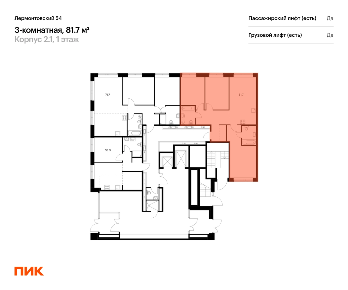 Продаётся 3-комн.квартира площадью 81.70 кв.м на 1 этаже 9 этажного дома (Корпус 2.1, секция 3) проекта ПИК Лермонтовский 54. Светлый просторный подъезд на уровне земли, функциональная планировка, большие окна. <br> <br>«Лермонтовский 54» находится в центре Санкт-Петербурга на набережной Обводного канала, в 5 минутах пешком от метро «Балтийская». Здесь будут квартиры с окнами в пол, высокими потолками и террасами. <br> <br>Жилой квартал находится в центре Санкт-Петербурга, в Адмиралтейском районе, на набережной Обводного канала. В 5 минутах пешком — станция метро «Балтийская». До Невского проспекта на автомобиле ехать 8 минут, до Московского проспекта — всего 2 минуты. <br> <br>Необычные фасады «Лермонтовского 54» напоминают о промышленной архитектуре, которая была популярна в Санкт-Петербурге в конце XIX и начале XX века. Материал отделки — прочный кирпич, который прослужит до 100 лет. А благодаря системе чиллер-фанкойл на фасадах не будет блоков кондиционеров — всё охлаждение происходит внутри здания. <br> <br>В «Лермонтовском» возводятся дома высотой от 7 до 9 этажей с небольшим количеством квартир: на этаже может быть всего две квартиры. Во дворах будут закрытые парки с детскими площадками и местами для отдыха, а на подземном этаже — паркинг с удобной навигацией. Между домами протянется пешеходный бульвар для прогулок и отдыха, для велосипедистов предусмотрены специальные дорожки и парковки. <br> <br>В 2024 году в «Лермонтовском 54» открылся лицей на 1000 мест. Он разместился в здании 1824 года — раньше здесь было Николаевское кавалерийское училище. <br> <br>Во всех квартирах будут трёхметровые потолки и окна в пол. На 8-м и 9-м этажах будут лоджии, а на других этажах — французские и обычные балконы. Также здесь можно выбрать квартиру с террасой или патио. <br> <br>На первых этажах откроются магазины, кафе и другие сервисы. Со стороны набережной в домах, которые признаны объектами культурного наследия, мы разместим общественные пространства. <br> <br>Недалеко от «Лермонтовского 54» находится Юсуповский дворец, парк Екатерингоф, на машине можно доехать до острова Новая Голландия и Мариинского театра. Рядом работают школы, детские сады, торговые центры и гипермаркеты. Артикул - 921108О застройщике