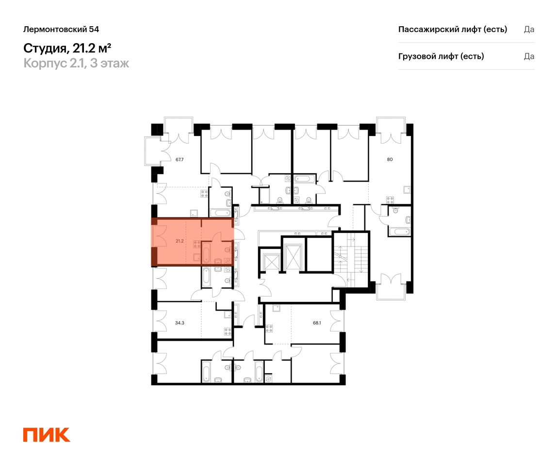 Продаётся квартира-студия площадью 21.20 кв.м на 6 этаже 9 этажного дома (Корпус 2.1, секция 3) проекта ПИК Лермонтовский 54. Светлый просторный подъезд на уровне земли, функциональная планировка, большие окна. <br> <br>«Лермонтовский 54» находится в центре Санкт-Петербурга на набережной Обводного канала, в 5 минутах пешком от метро «Балтийская». Здесь будут квартиры с окнами в пол, высокими потолками и террасами. <br> <br>Жилой квартал находится в центре Санкт-Петербурга, в Адмиралтейском районе, на набережной Обводного канала. В 5 минутах пешком — станция метро «Балтийская». До Невского проспекта на автомобиле ехать 8 минут, до Московского проспекта — всего 2 минуты. <br> <br>Необычные фасады «Лермонтовского 54» напоминают о промышленной архитектуре, которая была популярна в Санкт-Петербурге в конце XIX и начале XX века. Материал отделки — прочный кирпич, который прослужит до 100 лет. А благодаря системе чиллер-фанкойл на фасадах не будет блоков кондиционеров — всё охлаждение происходит внутри здания. <br> <br>В «Лермонтовском» возводятся дома высотой от 7 до 9 этажей с небольшим количеством квартир: на этаже может быть всего две квартиры. Во дворах будут закрытые парки с детскими площадками и местами для отдыха, а на подземном этаже — паркинг с удобной навигацией. Между домами протянется пешеходный бульвар для прогулок и отдыха, для велосипедистов предусмотрены специальные дорожки и парковки. <br> <br>В 2024 году в «Лермонтовском 54» открылся лицей на 1000 мест. Он разместился в здании 1824 года — раньше здесь было Николаевское кавалерийское училище. <br> <br>Во всех квартирах будут трёхметровые потолки и окна в пол. На 8-м и 9-м этажах будут лоджии, а на других этажах — французские и обычные балконы. Также здесь можно выбрать квартиру с террасой или патио. <br> <br>На первых этажах откроются магазины, кафе и другие сервисы. Со стороны набережной в домах, которые признаны объектами культурного наследия, мы разместим общественные пространства. <br> <br>Недалеко от «Лермонтовского 54» находится Юсуповский дворец, парк Екатерингоф, на машине можно доехать до острова Новая Голландия и Мариинского театра. Рядом работают школы, детские сады, торговые центры и гипермаркеты. Артикул - 921131О застройщике