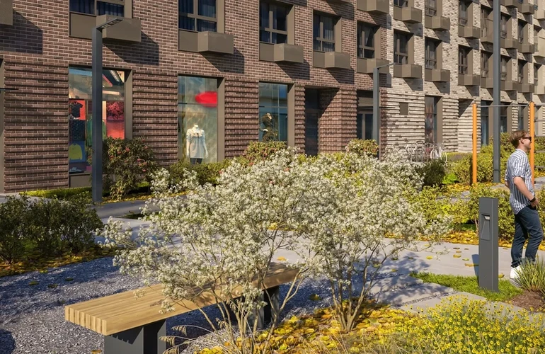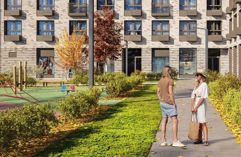 «Аэронавт» — камерный жилой квартал в который входит всего два дома. В его дворе будет закрытый парк с детскими площадками и местами для отдыха. На первом этаже откроются кафе, магазины и другие сервисы. Выйти во двор и на улицу можно из просторных и светлых парадных, где также будет отдельное помещение для колясок. В подземный паркинг можно будет спуститься на лифте с любого этажа.