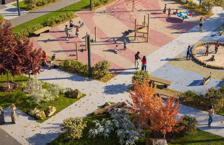В проекте появится школа для 1250 детей и три детских сада. Школа и один из детских садов на 350 мест откроются одновременно с заселением первой очереди: это значит, что жители проекта смогут отдать своих детей в новые образовательные учреждения на территории квартала.