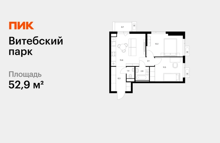Продаётся 2-комн.квартира площадью 52.90 кв.м на 7 этаже 12 этажного дома (Корпус 6, секция 1) проекта ПИК Витебский парк. Светлый просторный подъезд на уровне земли, функциональная планировка, большие окна, с отделкой. <br> <br>Жилой квартал «Витебский парк» находится во Фрунзенском районе Санкт-Петербурга, в 15 минутах пешком от метро «Обводный канал». А в 2027 году всего в паре минут от проекта планируют открыть станцию метро «Боровая». <br> <br>В квартал входят 3 детских сада, школа и 7 жилых домов с дворами-парками, куда не могут зайти посторонние люди и заехать автомобили. Школа на 1250 мест и детский сад на 350 мест откроются одновременно с заселением первой очереди, это значит, что жители проекта смогут отдать своих детей в новые образовательные учреждения на территории квартала. <br> <br>Во дворах приятно отдыхать, знакомиться с соседями и даже заниматься йогой, а для детей мы построим детские площадки. Рядом появятся современные спортивные площадки. На первых этажах домов откроются магазины, кафе и другие сервисы. Через весь жилой район протянется широкий пешеходный бульвар для прогулок и спорта. <br> <br>Рядом с «Витебским парком» есть всё для комфортной жизни: магазины, торговые центры, фитнес-клубы, кафе и рестораны, а ещё детские сады, школы, вузы и поликлиника. Артикул - 1005145О застройщике