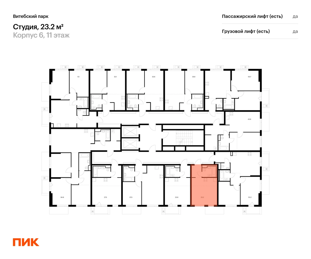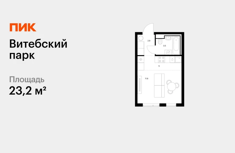 Продаётся квартира-студия площадью 23.20 кв.м на 11 этаже 12 этажного дома (Корпус 6, секция 2) проекта ПИК Витебский парк. Светлый просторный подъезд на уровне земли, функциональная планировка, большие окна, с отделкой. <br> <br>Жилой квартал «Витебский парк» находится во Фрунзенском районе Санкт-Петербурга, в 15 минутах пешком от метро «Обводный канал». А в 2027 году всего в паре минут от проекта планируют открыть станцию метро «Боровая». <br> <br>В квартал входят 3 детских сада, школа и 7 жилых домов с дворами-парками, куда не могут зайти посторонние люди и заехать автомобили. Школа на 1250 мест и детский сад на 350 мест откроются одновременно с заселением первой очереди, это значит, что жители проекта смогут отдать своих детей в новые образовательные учреждения на территории квартала. <br> <br>Во дворах приятно отдыхать, знакомиться с соседями и даже заниматься йогой, а для детей мы построим детские площадки. Рядом появятся современные спортивные площадки. На первых этажах домов откроются магазины, кафе и другие сервисы. Через весь жилой район протянется широкий пешеходный бульвар для прогулок и спорта. <br> <br>Рядом с «Витебским парком» есть всё для комфортной жизни: магазины, торговые центры, фитнес-клубы, кафе и рестораны, а ещё детские сады, школы, вузы и поликлиника. Артикул - 1005320О застройщике