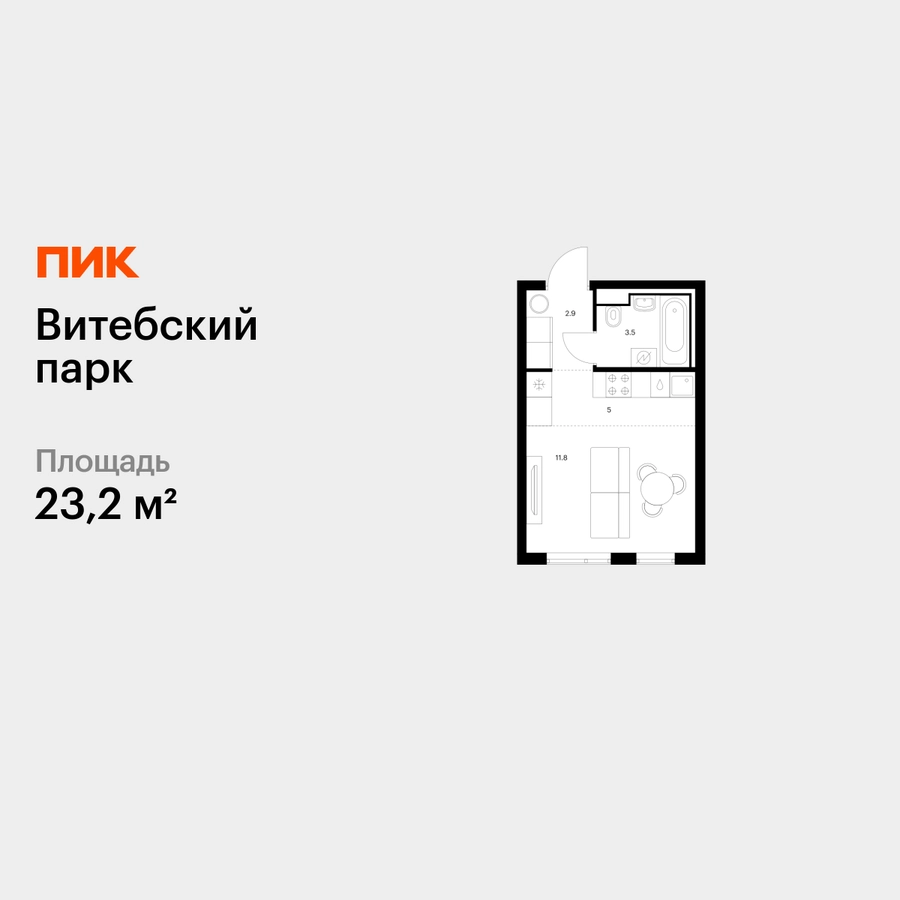 Продаётся квартира-студия площадью 23.20 кв.м на 11 этаже 12 этажного дома (Корпус 6, секция 1) проекта ПИК Витебский парк. Светлый просторный подъезд на уровне земли, функциональная планировка, большие окна, с отделкой. <br> <br>Жилой квартал «Витебский парк» находится во Фрунзенском районе Санкт-Петербурга, в 15 минутах пешком от метро «Обводный канал». А в 2027 году всего в паре минут от проекта планируют открыть станцию метро «Боровая». <br> <br>В квартал входят 3 детских сада, школа и 7 жилых домов с дворами-парками, куда не могут зайти посторонние люди и заехать автомобили. Школа на 1250 мест и детский сад на 350 мест откроются одновременно с заселением первой очереди, это значит, что жители проекта смогут отдать своих детей в новые образовательные учреждения на территории квартала. <br> <br>Во дворах приятно отдыхать, знакомиться с соседями и даже заниматься йогой, а для детей мы построим детские площадки. Рядом появятся современные спортивные площадки. На первых этажах домов откроются магазины, кафе и другие сервисы. Через весь жилой район протянется широкий пешеходный бульвар для прогулок и спорта. <br> <br>Рядом с «Витебским парком» есть всё для комфортной жизни: магазины, торговые центры, фитнес-клубы, кафе и рестораны, а ещё детские сады, школы, вузы и поликлиника. Артикул - 1005187О застройщике