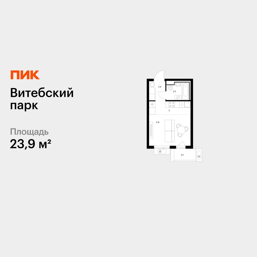 Продаётся квартира-студия площадью 23.90 кв.м на 6 этаже 12 этажного дома (Корпус 6, секция 1) проекта ПИК Витебский парк. Светлый просторный подъезд на уровне земли, функциональная планировка, большие окна, с отделкой. <br> <br>Жилой квартал «Витебский парк» находится во Фрунзенском районе Санкт-Петербурга, в 15 минутах пешком от метро «Обводный канал». А в 2027 году всего в паре минут от проекта планируют открыть станцию метро «Боровая». <br> <br>В квартал входят 3 детских сада, школа и 7 жилых домов с дворами-парками, куда не могут зайти посторонние люди и заехать автомобили. Школа на 1250 мест и детский сад на 350 мест откроются одновременно с заселением первой очереди, это значит, что жители проекта смогут отдать своих детей в новые образовательные учреждения на территории квартала. <br> <br>Во дворах приятно отдыхать, знакомиться с соседями и даже заниматься йогой, а для детей мы построим детские площадки. Рядом появятся современные спортивные площадки. На первых этажах домов откроются магазины, кафе и другие сервисы. Через весь жилой район протянется широкий пешеходный бульвар для прогулок и спорта. <br> <br>Рядом с «Витебским парком» есть всё для комфортной жизни: магазины, торговые центры, фитнес-клубы, кафе и рестораны, а ещё детские сады, школы, вузы и поликлиника. Артикул - 1005129О застройщике